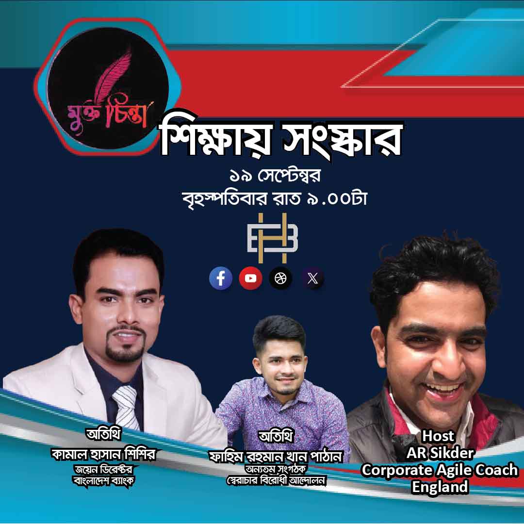 শিক্ষা মানুষের চিন্তাধারা, জ্ঞান, এবং দক্ষতা বৃদ্ধি করে, যা তার ব্যক্তিগত এবং পেশাগত জীবনে সাফল্য অর্জনে সহায়ক হয়। শিক্ষিত মানুষ কর্মসংস্থানের সুযোগ করে দারিদ্র্য বিমোচন করতে পারে, স্বাস্থ্য সচেতন হয়, সমাজে সাম্য ও ন্যায়বিচার প্রতিষ্ঠায় এগিয়ে আসেন, সে জন্য আমাদেরকে অর্জন করতে হয় সু-শিক্ষা। ২০২৪ এর গণঅভুত্থান পরবর্তী শিক্ষায় কি কি পরিবর্তন বা সংস্কার প্রয়োজন। এ বিষয়ে আলোচনাটি দেখতে চোখ রাখুন হাল বাংলার ওয়েবসাইটে…